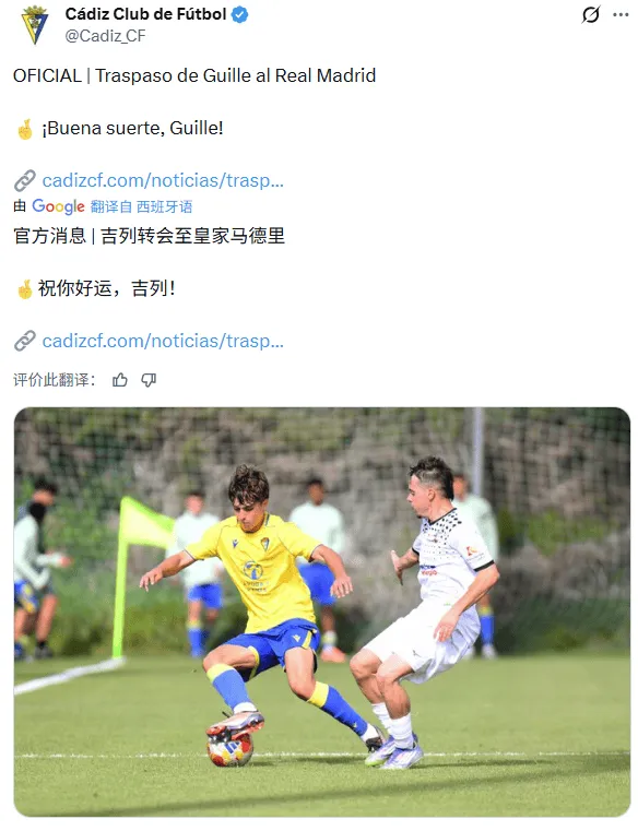 官方:皇馬簽下加迪斯17歲右后衛(wèi)吉列·岡薩雷斯