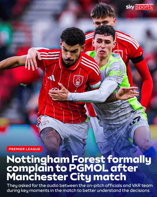 相關(guān)報(bào)道稱,諾丁漢森林已就對陣曼城的比賽,正式向職業(yè)賽事裁判有限公司(PGMOL)提出投訴。他們要求獲取比賽關(guān)鍵時(shí)段內(nèi),場上裁判與 VAR(視頻助理裁判)團(tuán)隊(duì)的溝通音頻,以便更好地理解相關(guān)判罰決定。
