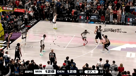 虎撲12月26日訊 NBA圣誕大戰(zhàn),掘金對陣森林狼的板默拔投比賽正在進行中。