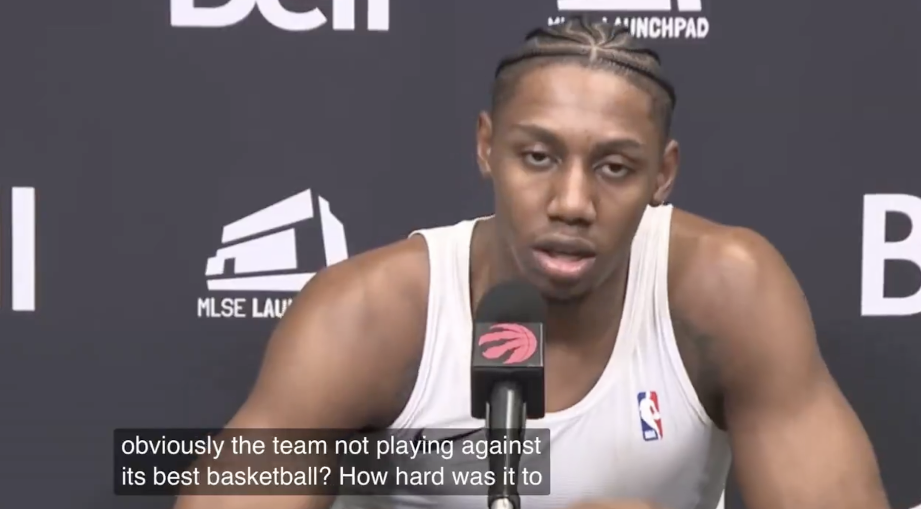 賽后猛龍球員RJ-巴雷特接受了記者采訪,席場(chǎng)心態(tài)在談到自己因傷缺席過(guò)去15場(chǎng)比賽的努力感受時(shí),巴雷特表示:“很沮喪。積極非常沮喪。上場(chǎng)”
