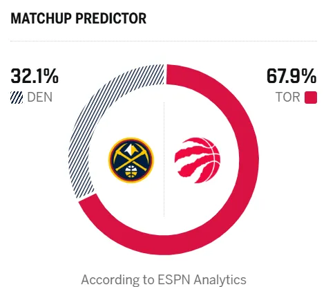 [流言板]ESPN預(yù)測(cè)明日比賽:猛龍勝率67.9%,掘金勝率32.1%