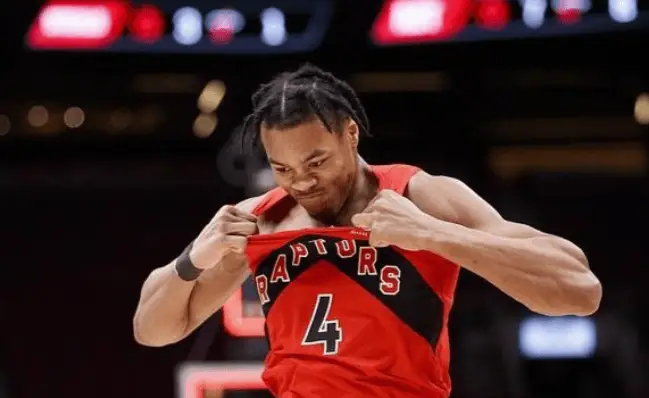 本場比賽,猛龍球員斯科蒂-巴恩斯全場14投6中,三分2中0得到14分4籃板7助攻3失誤。
