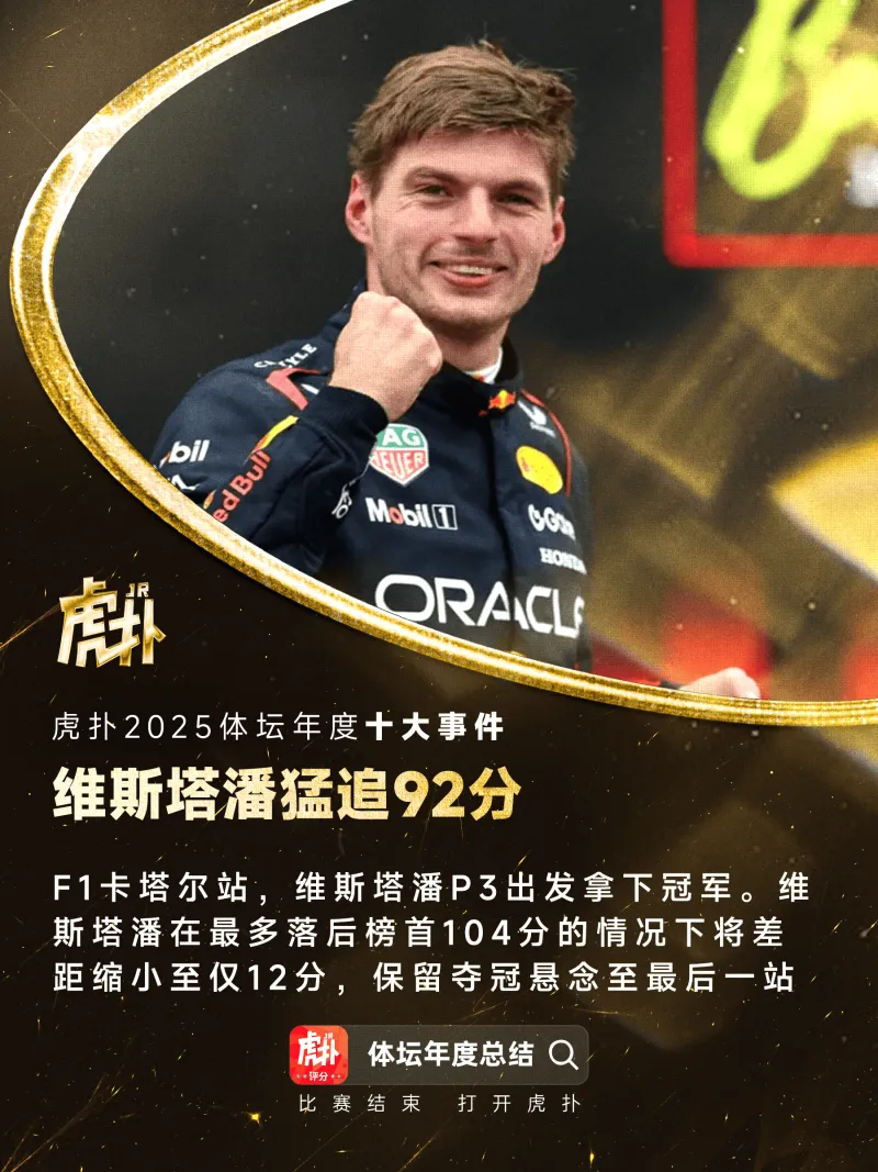 F1卡塔爾站,維斯塔潘P3出發(fā)拿下冠軍。自荷蘭站起,維斯塔潘在最多落后積分榜榜首104分的情況下奮起直追,將差距縮小至僅12分,保留奪冠懸念至最后一站。