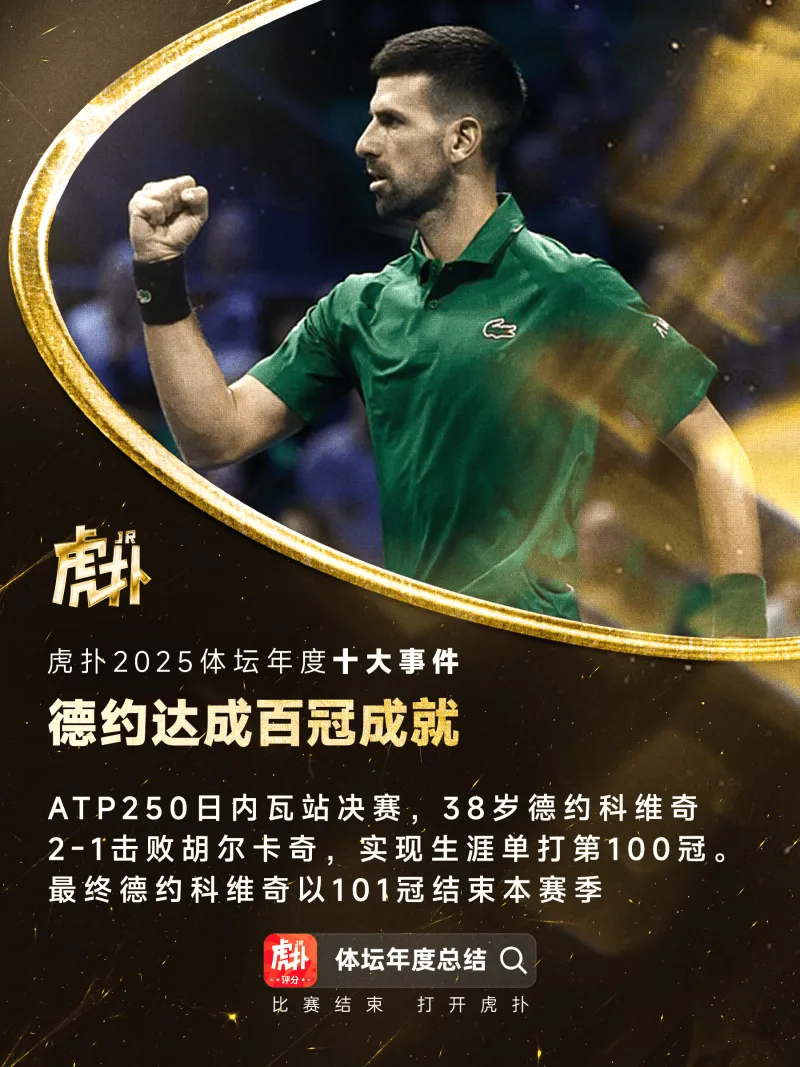 ATP250日內(nèi)瓦站決賽,38歲德約科維奇2-1擊敗胡爾卡奇,實(shí)現(xiàn)生涯單打第100冠。隨著德約科維奇退出ATP年終總決賽,德約科維奇以101冠結(jié)束本賽季。