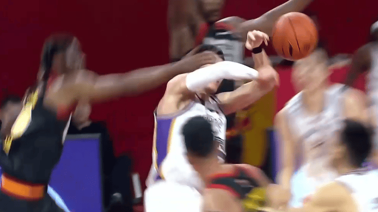[流言板]廖三寧突破上籃遭連續(xù)打到面部,裁判回看判普通犯規(guī)