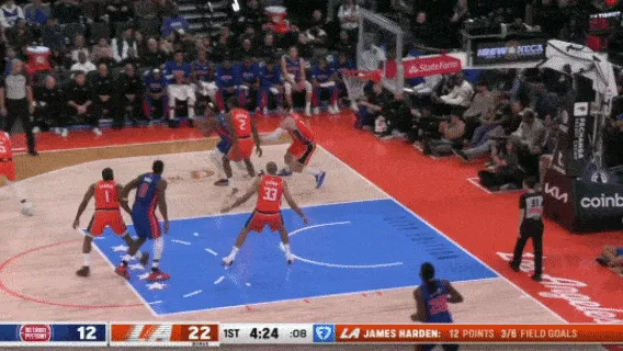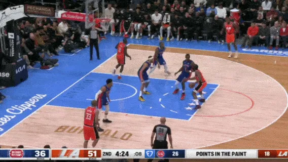 當(dāng)他持球時(shí),活塞可以執(zhí)行很多傳切配合,戰(zhàn)術(shù)非常多樣,
