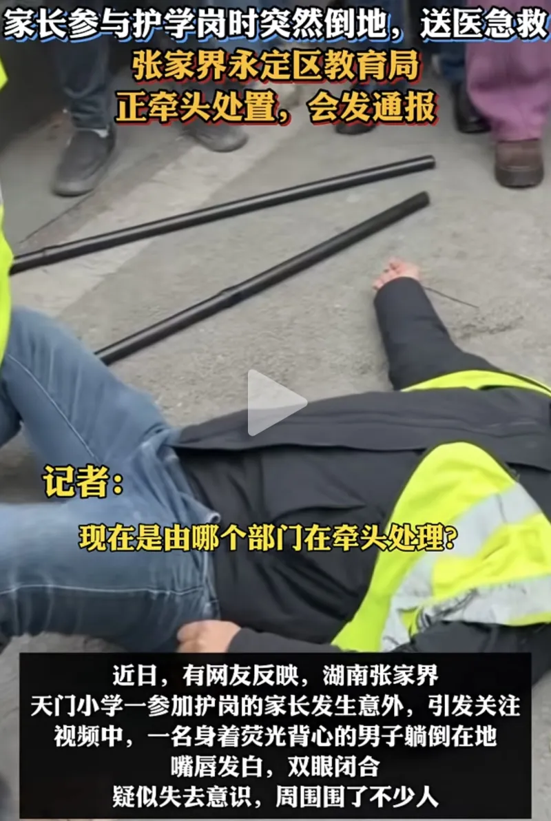 湖南張家界市永定區(qū)教育局12月30日發(fā)布情況通報(bào):12月29日17時(shí)20分許,我區(qū)某小學(xué)一家長(zhǎng)在“護(hù)學(xué)崗”志愿執(zhí)勤時(shí)突然暈倒?,F(xiàn)場(chǎng)人員第一時(shí)間撥打120急救電話,聯(lián)系附近醫(yī)生趕赴現(xiàn)場(chǎng)施救,后送至市人民醫(yī)院全力搶救,于19時(shí)08分搶救無(wú)效死亡。我區(qū)教育、衛(wèi)健、公安等部門已成立工作專班,正全力做好事件調(diào)查及善后工作。