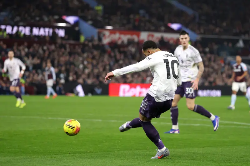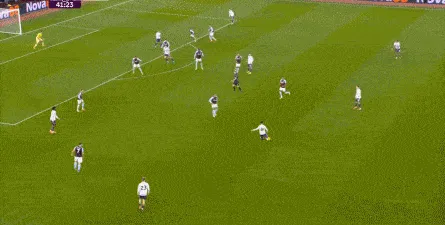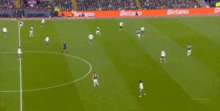 第45分鐘,維拉在中場(chǎng)完成搶斷,由來(lái)到中路的麥金頂住后衛(wèi)線,聯(lián)系到羅杰斯,然后在一對(duì)一中擊倒了曼聯(lián):