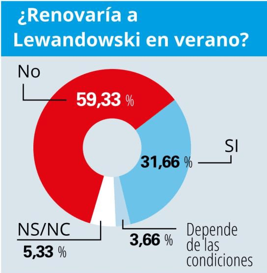 首先,在“是否續(xù)約現(xiàn)年37歲的萊萬多夫斯基”的問題上,59.3%的受訪會員(178人)選擇“否”,31.6%的會員(95人)支持續(xù)約;另有5.3%(16人)未作表態(tài),3.6%(11人)表示將取決于新合同的具體條款。報道指出,年齡因素與未來薪資結(jié)構(gòu),是影響會員判斷的重要背景。