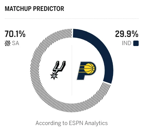 [流言板]ESPN預(yù)測(cè)明日比賽:馬刺勝率70.1%,步行者勝率29.9%