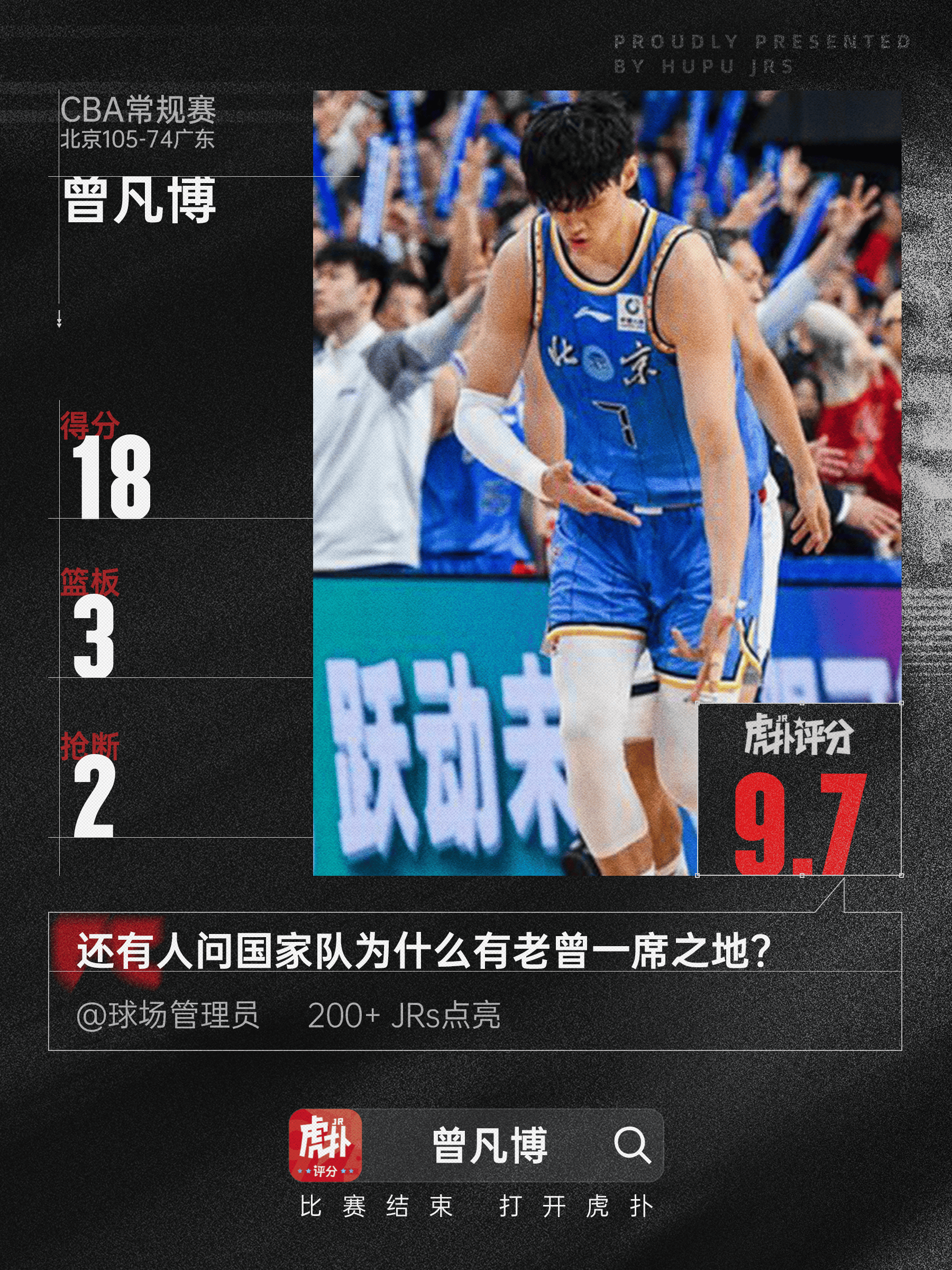 [流言板]攻防一體!板攻博全曾凡博全場9中7,防體分中分助三分6中4砍下18分3助2搶斷1蓋帽由虎撲籃球資訊 發(fā)表在CBA專區(qū) https://bbs.hupu.com/cba
