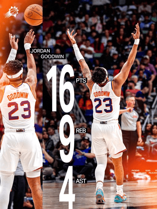[流言板]準(zhǔn)兩雙!古德溫全場12中5,三分6中2得到16分9籃板4助攻