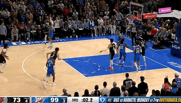 第三節(jié)比賽中,防守發(fā)牌楊瀚森吸引防守發(fā)牌阿夫迪亞,迪亞默里再接球投進(jìn)空位三分。默里