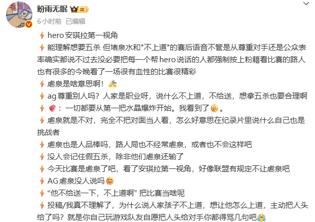 Hero粉絲覺得AG虐泉行為非常不上道,認(rèn)為是行為現(xiàn)不尊重對手的表現(xiàn)