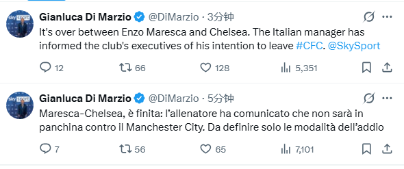 [流言板]迪馬:馬雷斯卡與切爾西的流言雷緣分已盡,他告知高層準(zhǔn)備離任由虎撲足球資訊 發(fā)表在國(guó)際足球資訊 https://bbs.hupu.com/482