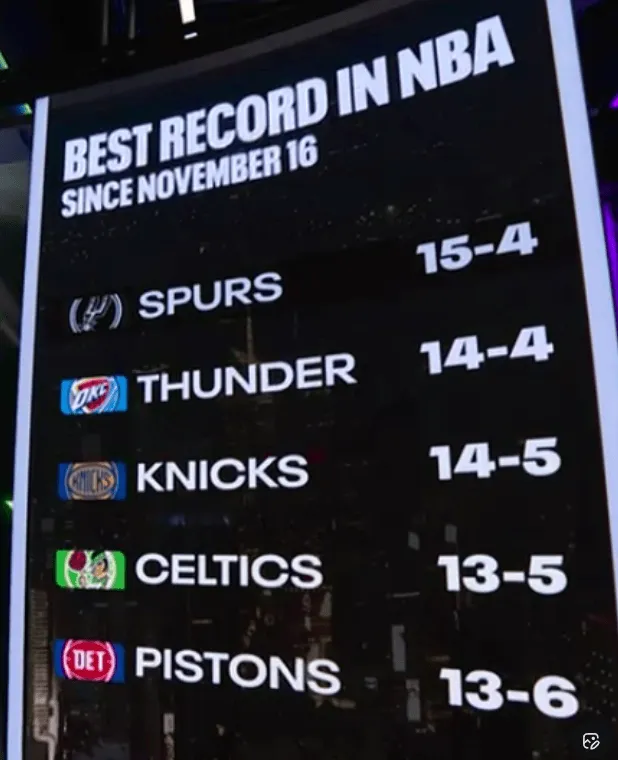 賽前,個(gè)半轉(zhuǎn)播方曬出近一個(gè)半月(11月16日至今)的月戰(zhàn)戰(zhàn)績(jī)排名: