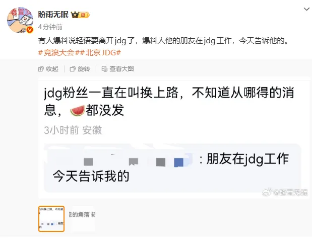瓜主爆料:輕語離開JDG了,大家覺得他是爆料