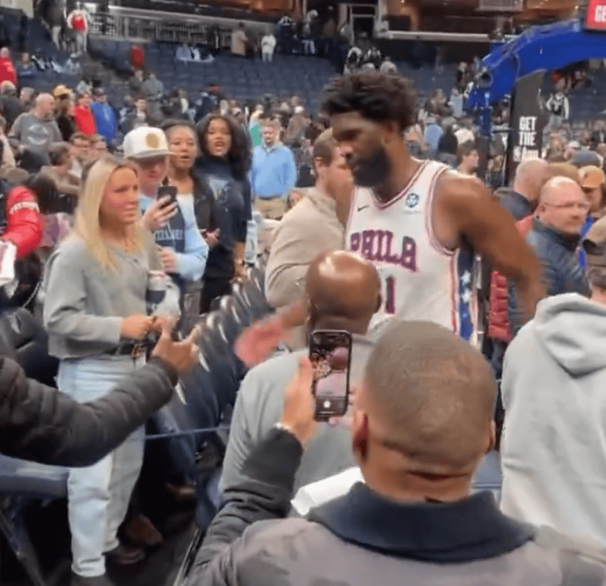 視頻中,一位球迷在離場時(shí)對喬爾-恩比德大喊: