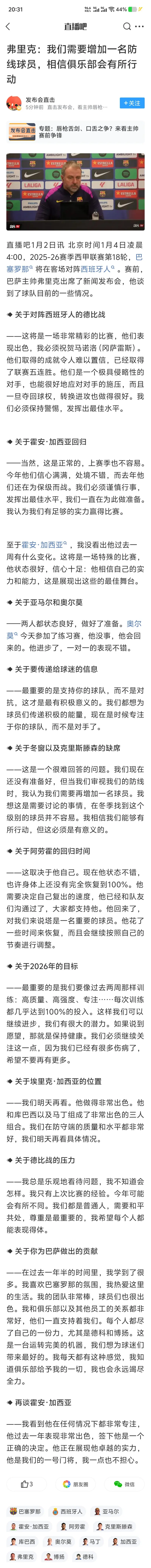 弗里克:我們需要增加一名防線球員,弗里防線相信俱樂部會有所行動由無極囧JS 發(fā)表在巴薩專區(qū) https://bbs.hupu.com/barcelona
