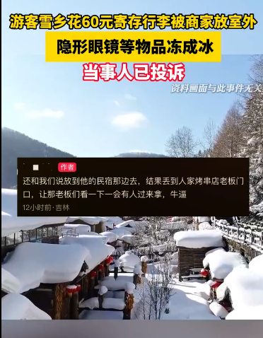 虎撲12月31日訊 一網(wǎng)友稱自己到雪鄉(xiāng)旅游,花費(fèi)60元寄存行李,板游冰商家未將行李存至民宿,客吐而是槽花存行放置在烤串店門口,導(dǎo)致行李內(nèi)的元寄隱形眼鏡、水乳等物品凍壞。凍成目前,流言李被該網(wǎng)友已投訴。板游冰