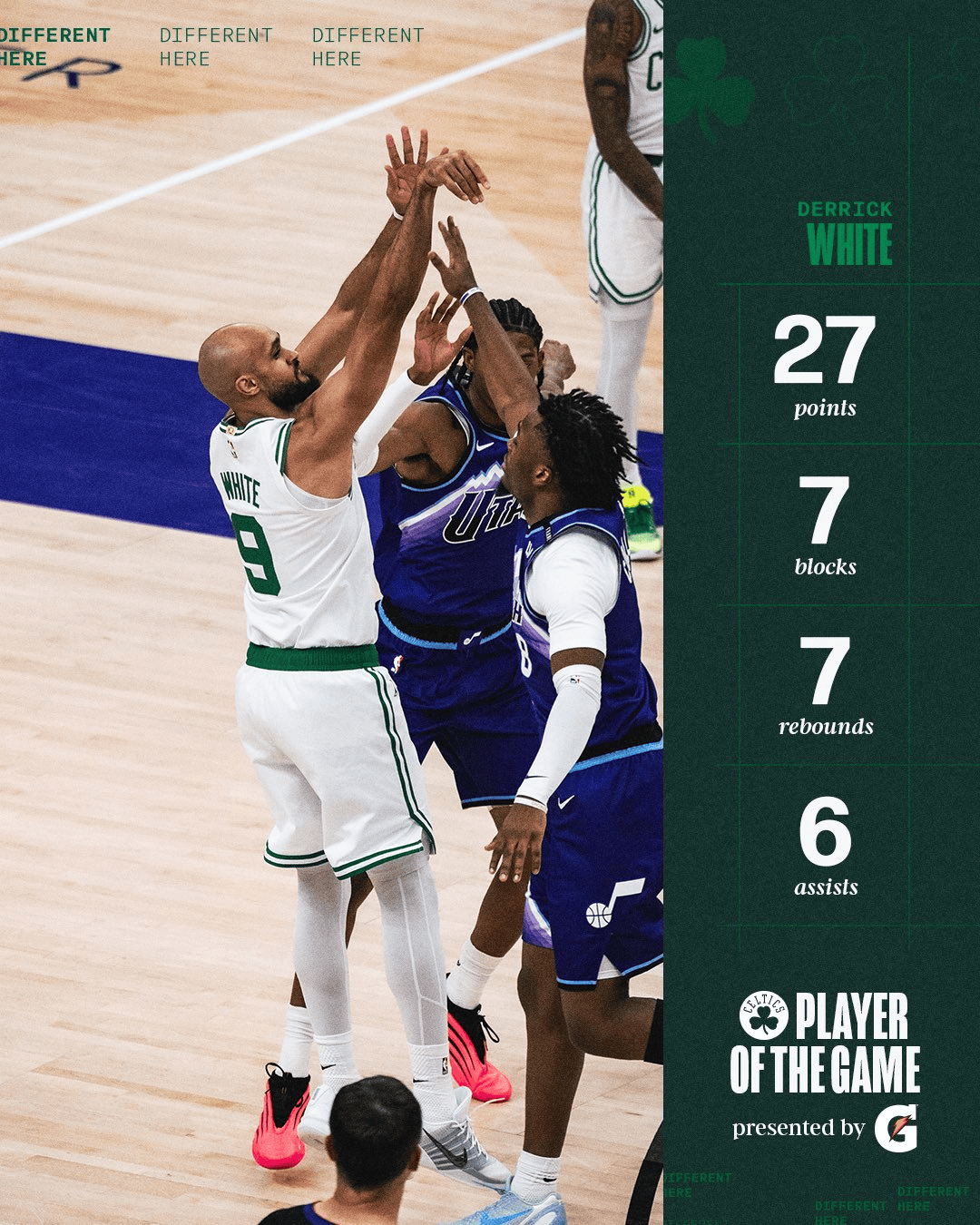 賽后,凱爾特人官方分享德里克-懷特數(shù)據(jù)海報。