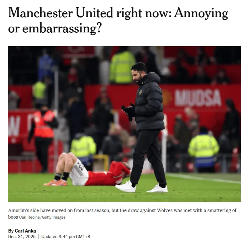 阿莫林治下的曼聯(lián),年末實力是否較年初有所提升?這份進步,是否值得球隊用一整年「屢屢添堵、偶現(xiàn)難堪」的比賽表現(xiàn)來換???答案見仁見智。曼聯(lián)雖基本擺脫了上賽季的一地雞毛,但主場戰(zhàn)平這支堪稱英超史上最拉胯的球隊,終究是讓人耿耿于懷、難以咽下這口氣。