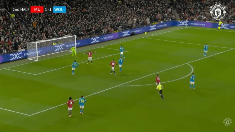 全場為數(shù)不多的亮眼配合,出現(xiàn)在曼聯(lián)首粒進球的進攻組織中:艾登?海文在狼隊半場從黃喜燦腳下斷球,帶球推進至禁區(qū)弧頂;海文送出直傳,齊爾克澤接球攻門,皮球經(jīng)克雷伊奇身體折射入網(wǎng)。這粒進球總算為火藥味十足的上半場,稍稍平復(fù)了焦灼的局勢,可曼聯(lián)卻遲遲無法擴大領(lǐng)先優(yōu)勢??死滓疗骐S即在半場補時階段,接角球頭球破門為狼隊扳平比分,下半場的比賽更是徹底陷入乏善可陳的平庸僵局。