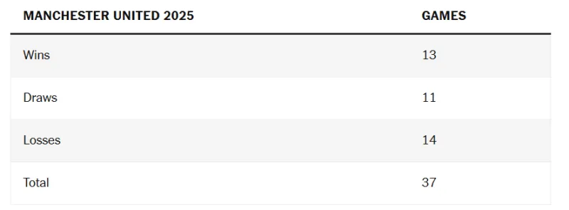 如今的曼聯(lián),身處英超中游陣營擠作一團的集團軍之中:積分榜第五的切爾西(30分)與第十四的布萊頓(25分),僅差5分。曼聯(lián)雖已止住戰(zhàn)績下滑的頹勢,各項賽事均未遭遇連敗,卻鮮有連勝入賬。球隊以一種莫名又揮之不去的別扭感,結(jié)束了這一年,戰(zhàn)績雖好過隊史最糟糕的賽季,卻依舊在諸多場次里,讓人倍感失望。