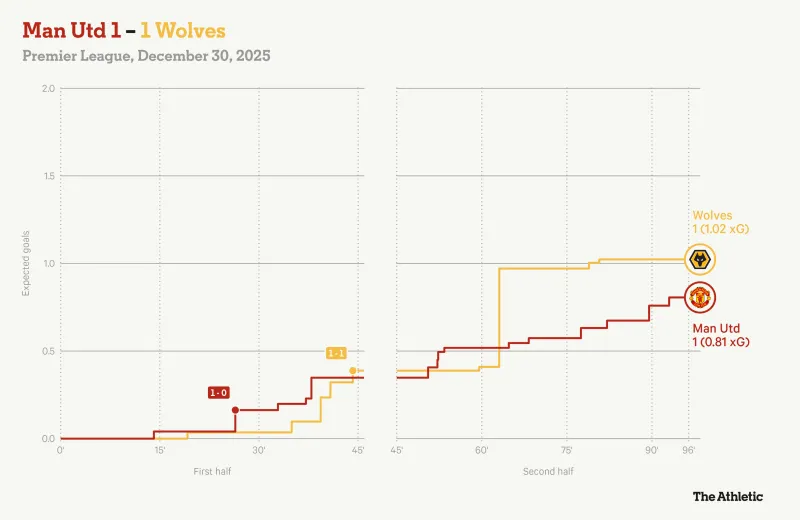 曼聯(lián)始終欠缺將1分改寫為3分所需的穩(wěn)定性與攻防強度。阿莫林的球隊近7場英超比賽中,先取得進球的情況下竟收獲5場平局;其執(zhí)教期間,球隊在1-0領(lǐng)先的局面下,勝率僅為52%(21場比賽拿下11勝)。球隊?wèi)?zhàn)績較上賽季雖有起色,卻遠不及那段整賽季崩盤潰敗前的水準。