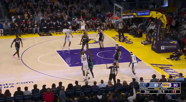 虎撲01月05日訊 NBA常規(guī)賽,湖人對(duì)陣灰熊的板東比賽正在進(jìn)行中。
