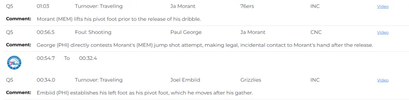 加時賽進行到最后34.0秒時,恩比德將左腳確立為中樞腳,但在收球后移動了這只腳,應該判罰走步違例。
