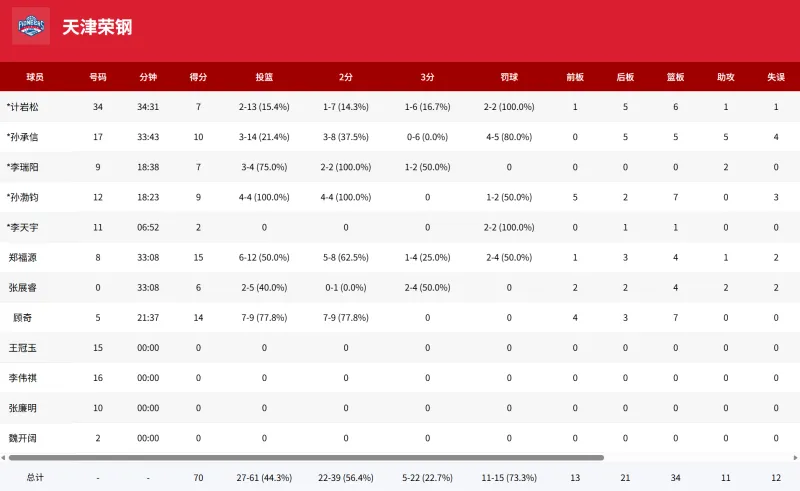 天津:鄭福源15分、賽段顧奇14分、睿騏孫承信10分。分川