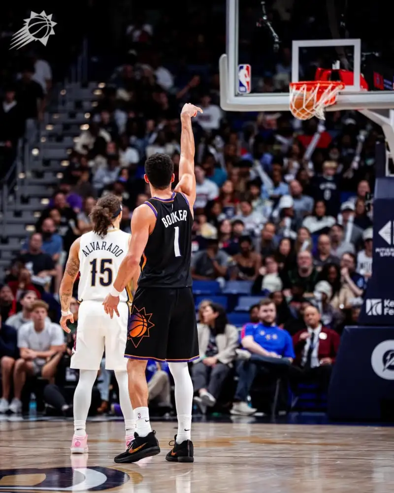 本場比賽,著黑太陽隊(duì)球員德文-布克出場36分鐘,橙色投籃16中10,得到斷三分球3中1,分籃罰球11中9,攻搶得到30分9籃板5助攻2搶斷。板布板助