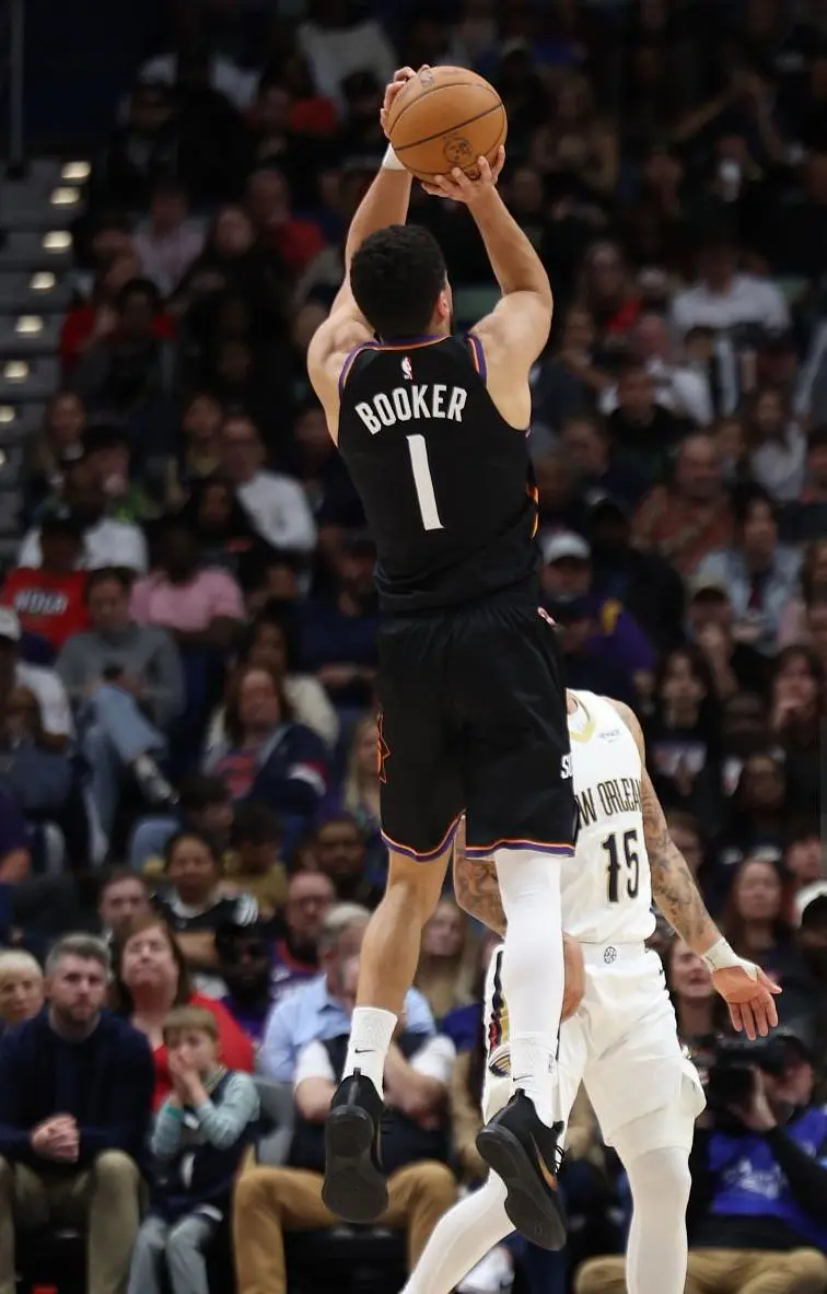 [流言板]布克穿著黑橙色BOOK2,得到30分9籃板5助攻2搶斷