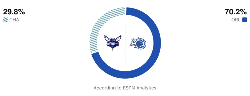 [流言板]ESPN預(yù)測黃蜂vs魔術(shù):黃蜂勝率29.8%,魔術(shù)勝率70.2%