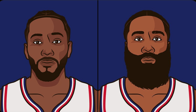 根據(jù)數(shù)據(jù)統(tǒng)計,哈登和倫納德合砍66分10籃板12助攻。