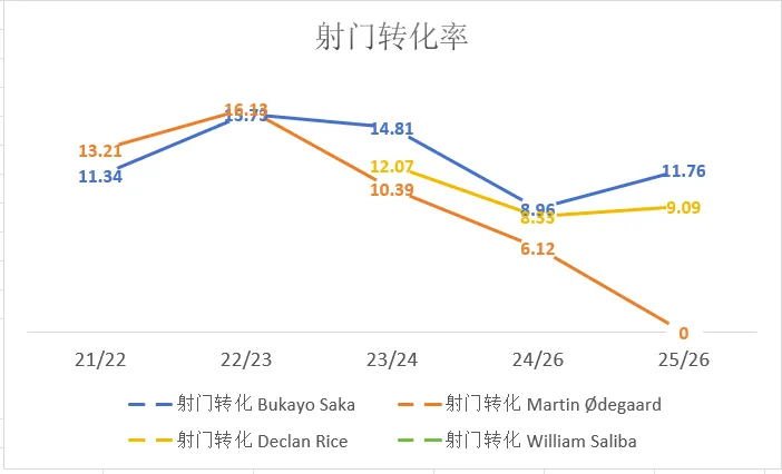 關(guān)鍵傳球能力,決定了創(chuàng)造 xg 能力,也就是給鋒線喂餅?zāi)芰?,?23/24 賽季,我廠的進(jìn)攻雙嬌 薩卡 + 厄德高,送出的關(guān)鍵傳球,占全廠一半。但最近兩個賽季,隨著 薩卡 與 厄德高出現(xiàn)傷病,尤其是厄德高本賽季經(jīng)常缺陣,這一損失,廠內(nèi)無人能彌補(bǔ),可能有些反印象的是,戳薩的關(guān)鍵傳球次數(shù)低于傷缺嚴(yán)重的厄德高,如果把傳威脅球能力視為進(jìn)攻組織核心標(biāo)記,那么 萊斯 與 薩卡 是我廠當(dāng)前的左右大腿了。喂餅?zāi)芰Φ某掷m(xù)下滑,進(jìn)攻便秘在所難免。