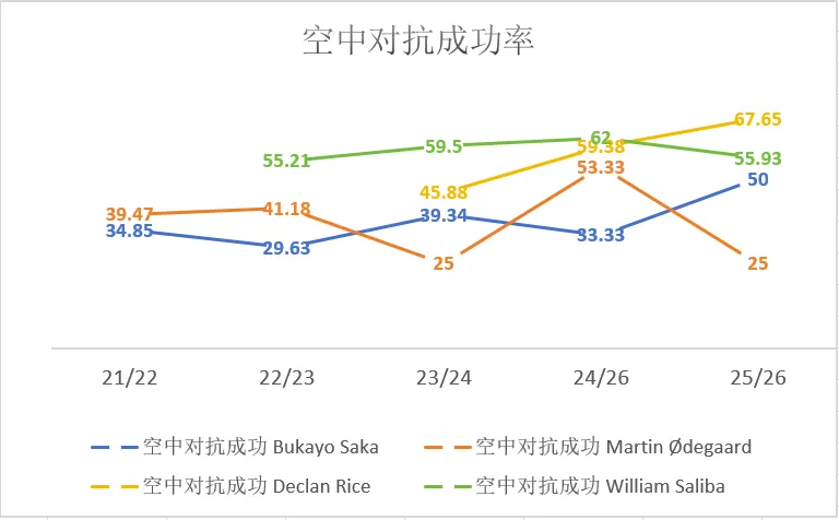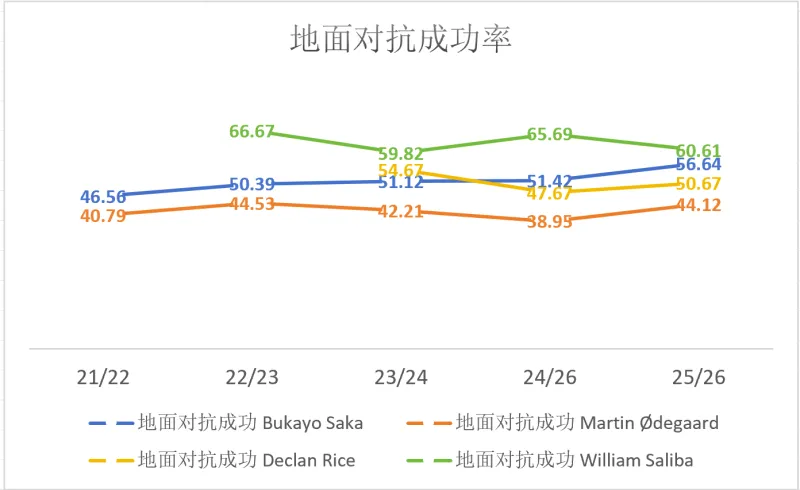 本賽季,薩卡與萊斯的盤帶次數(shù)及成功率,相比于上賽季都略有提升(雖然無法跟巔峰的 22/23 比)。