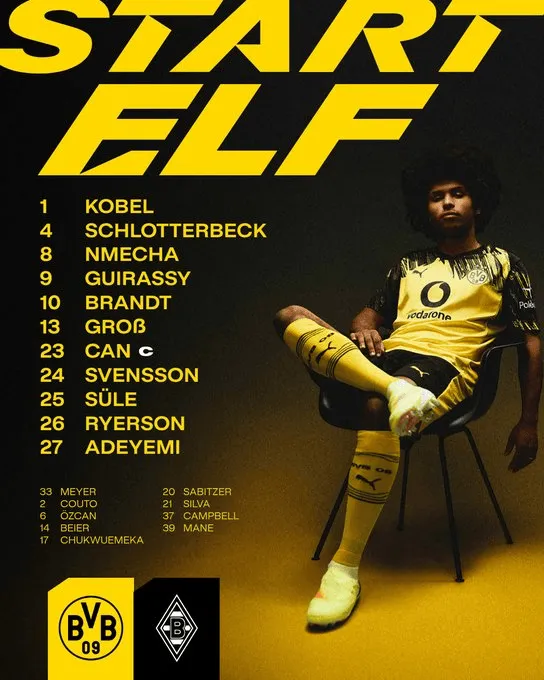 虎撲12月19日訊 德甲第15輪,多特蒙德主場對陣門興格拉德巴赫。賽前,雙方公布首發(fā)陣容: