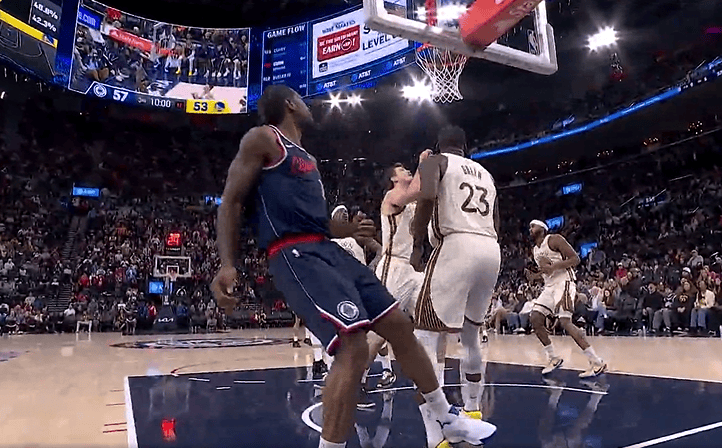 虎撲01月06日訊 NBA常規(guī)賽,快船對(duì)陣勇士的落地比賽正在進(jìn)行中。