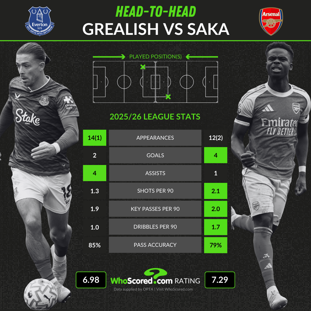 WhoScored統(tǒng)計,流言拉利格拉利什和薩卡本賽季英超數(shù)據對比:(格拉利什列前)