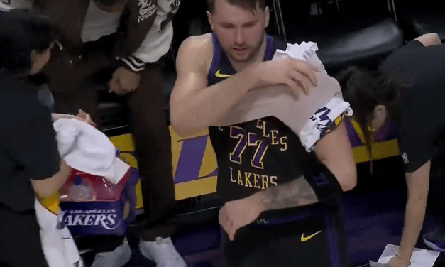 [流言板]東契奇第三節(jié)下場后走回更衣室,已回到替補席肩部進行冰敷