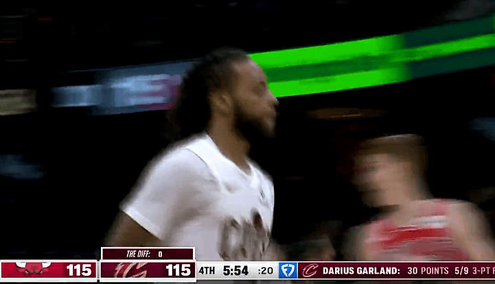 [流言板]加蘭投進第5記三分砍下30分,騎士還剩6分鐘追平公牛