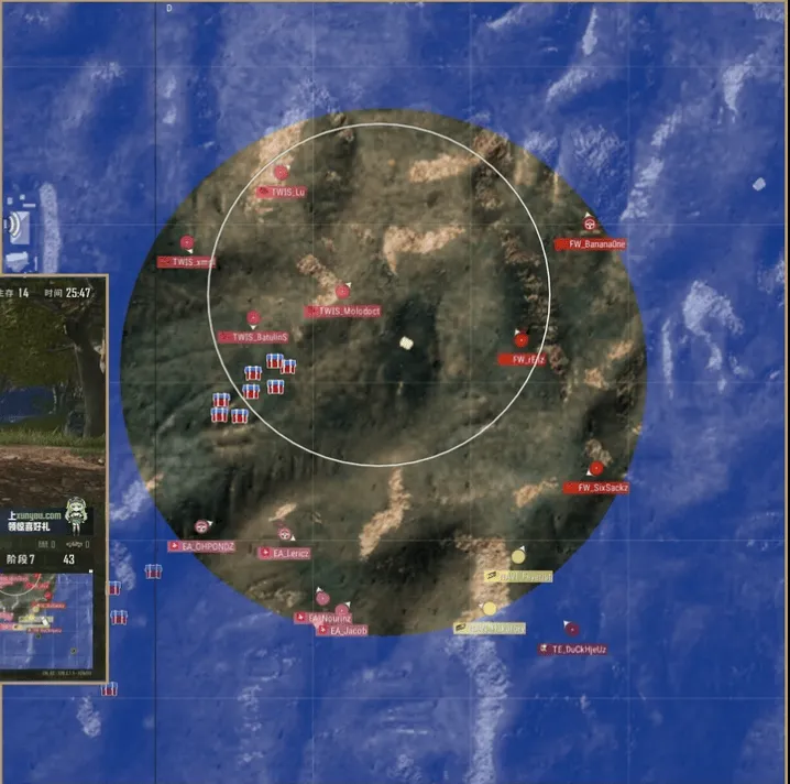 本局一圈刷在地圖北部,以飛機殘骸為中心。賽后賽