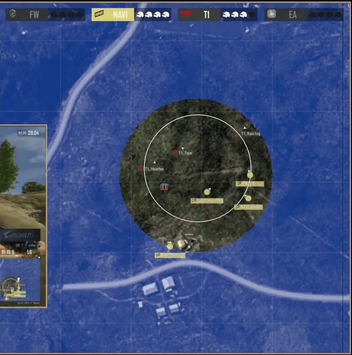 階段6,圈型刷到韓國坡附近,F(xiàn)W與EA交戰(zhàn),T1也出手勸架,EA先被淘汰,隨后FW兩人也被T1淘汰出局。