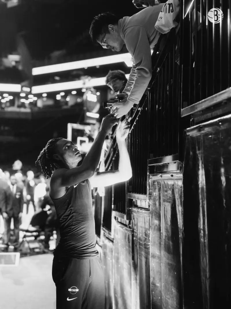 虎撲12月19日訊 籃網(wǎng)ins分享球員給球迷互動簽名時刻。