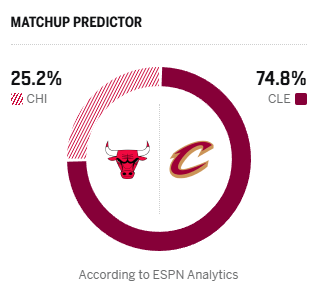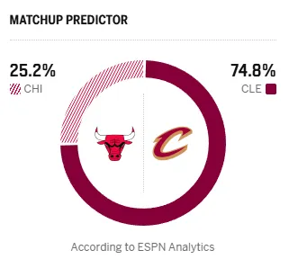 [流言板]ESPN預(yù)測明日比賽:騎士勝率74.8%,公牛勝率25.2%