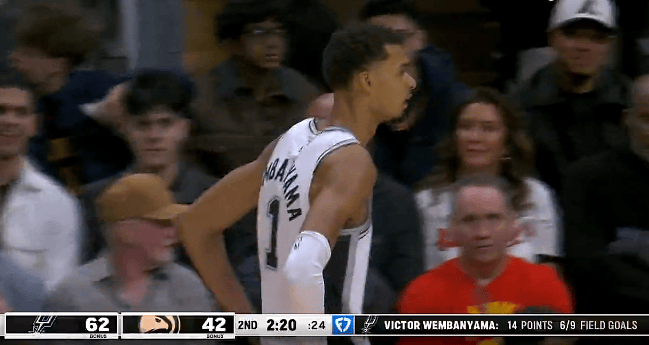 [流言板]文班亞馬接球起飛輕松滑翔劈扣,目前10中6得到14分5籃板