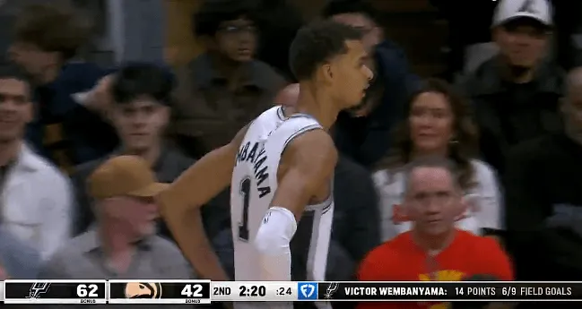 虎撲12月20日訊 NBA常規(guī)賽,馬刺對陣老鷹的板文班亞板比賽正在進行中。