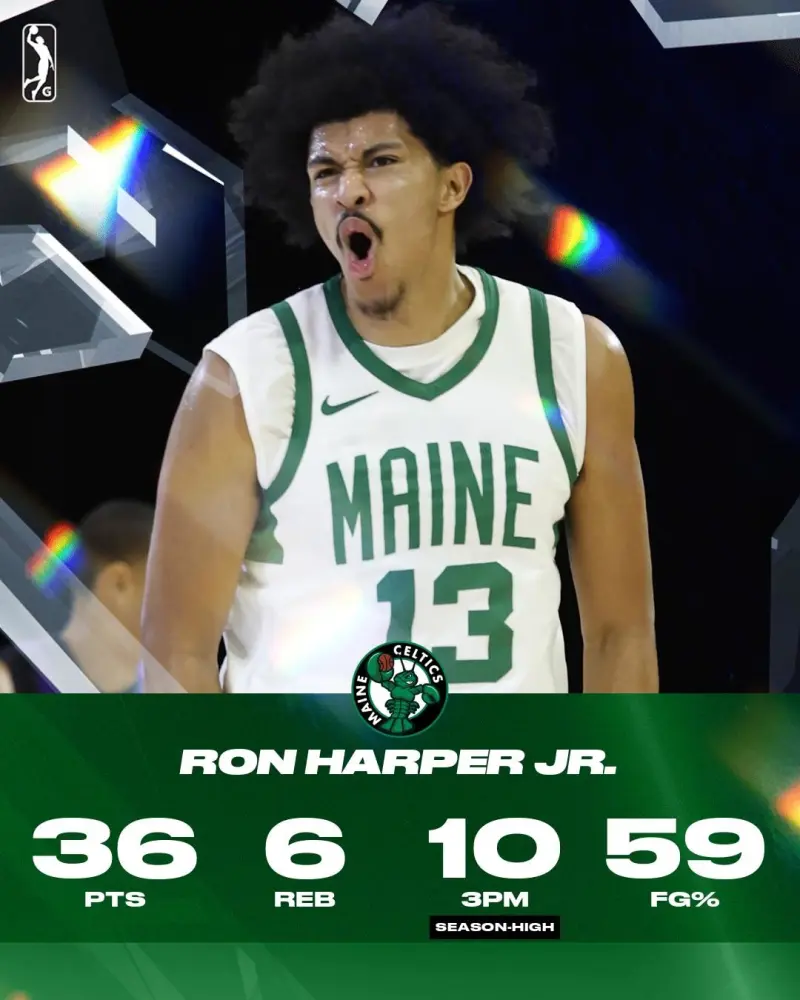 在今日NBA G聯(lián)賽緬因凱爾特人以122-123不敵諾布爾斯維爾爆炸,砍迪凱爾特人球員小羅恩-哈珀得到了36分6籃板2助攻2搶斷,流言倫投籃22中13,板分三分16中10。砍迪